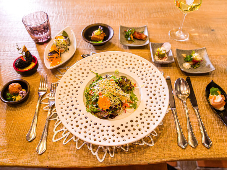 Jeden Tag bereiten wir für die Hotelgäste ein 5-Gang-Verwöhnmenü vor. Auf dieses arbeitet das ganze Küchenteam den ganzen Tag hin.
