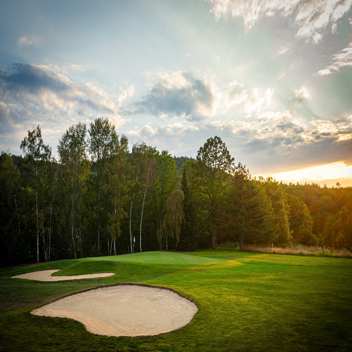 Abschlagplatz des Golfclub Oberfranken bei Sonnenschein