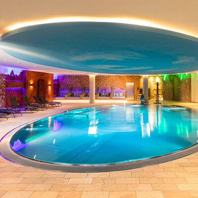 In unserem exklusiven Wellnessbereich „Schlössla“ erwartet Sie eine Wohlfühloase der Extraklasse. Entspannen Sie im Panoramaschwimmbad mit Whirlliegen, Gegenstromanlage und Wasserkaskade oder genießen Sie den ganzjährig beheizten Infinity-Außenpool mit angenehmen 32°C. Unsere großzügige Saunalandschaft umfasst eine Kräutersauna (60°C), ein Aromadampfbad (45°C), eine Infrarot-Physiotherapiekabine sowie eine Panorama-Außensauna (90°C) und eine urige Fass-Sauna „Hopfen & Malz“.