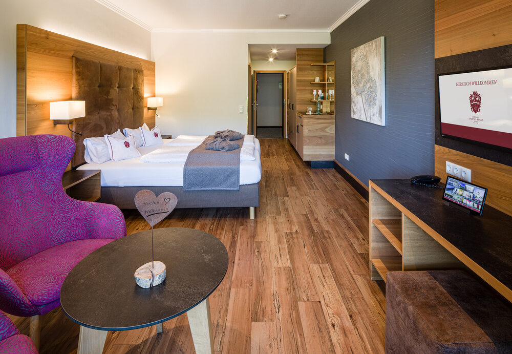 Ein gemütliches Bett für erholsamen Schlaf in der Junior-Suite Schlössla im Hotel Sponsel-Regus