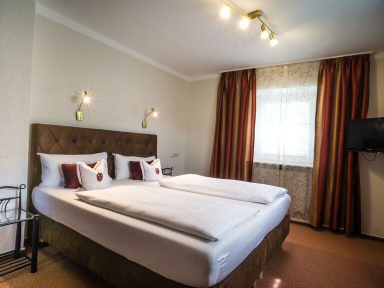 Im Erdgeschoss des Gästehauses, welches 15 Meter vom Hauptgebäude entfernt ist, liegt unsere geräumige Wohnung mit 45 m² die bis zu 4 Personen beherbergen kann. Die Wohnung besteht aus einem Zimmer mit Doppelbett, einem separierten Zimmer mit Einzelbett sowie ein Wohnzimmer und natürlich ein gemeinsam nutzbares Bad.