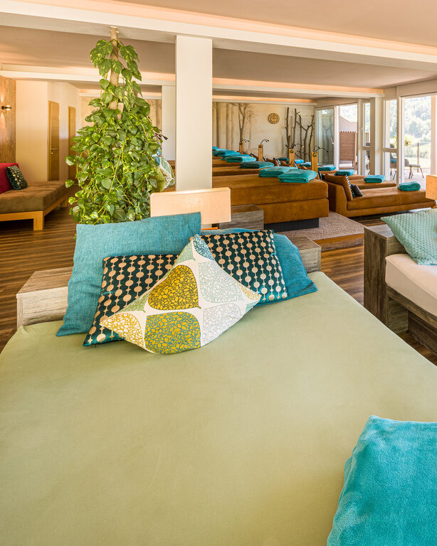Besondere Atmosphäre erhält die Junior-Suite durch die 4m² Panorama-Glasschreibe zum Tageslichtbad, in dem sowohl eine begehbare Dusche, Badewanne, Doppelwaschbecken und ein separiertes WC zu finden sind. Alle Zimmer im Schlössla sind stufenlos mit dem Aufzug erreichbar.